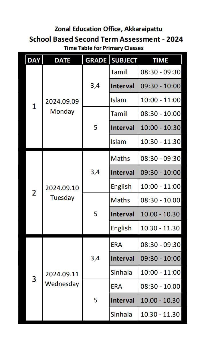 Coming 9th of September 2024 Second Term Exam for grade 1 - 5 will be start.