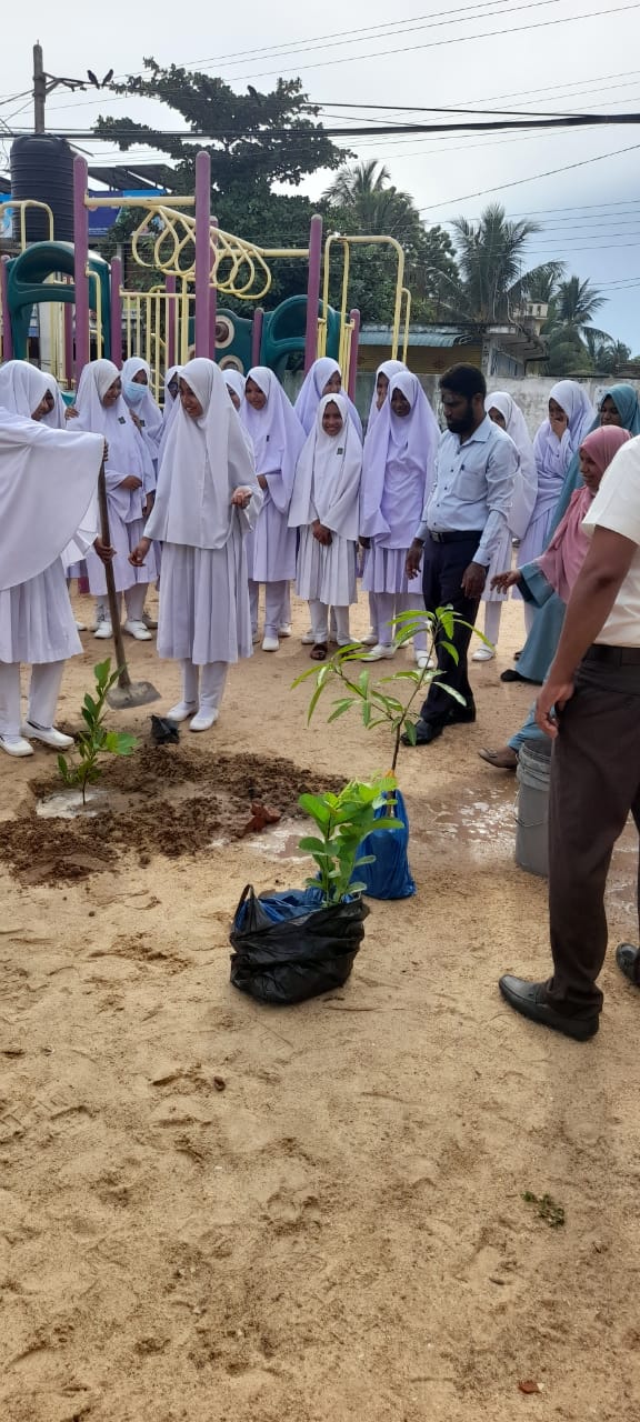 This tree planting event led to Solid Waste Management (SWM) activities. As a next step, to spread the 3R- Reduce, Reuse, Recycle (5, Recycling) principle among the students, new garbage bins painted to classify and separate waste were introduced in the school and placed for the use of the students. During the morning assembly that day, a special lecture on ozone was delivered by the school science teacher, Mrs. AJ. Fathima Sujana.