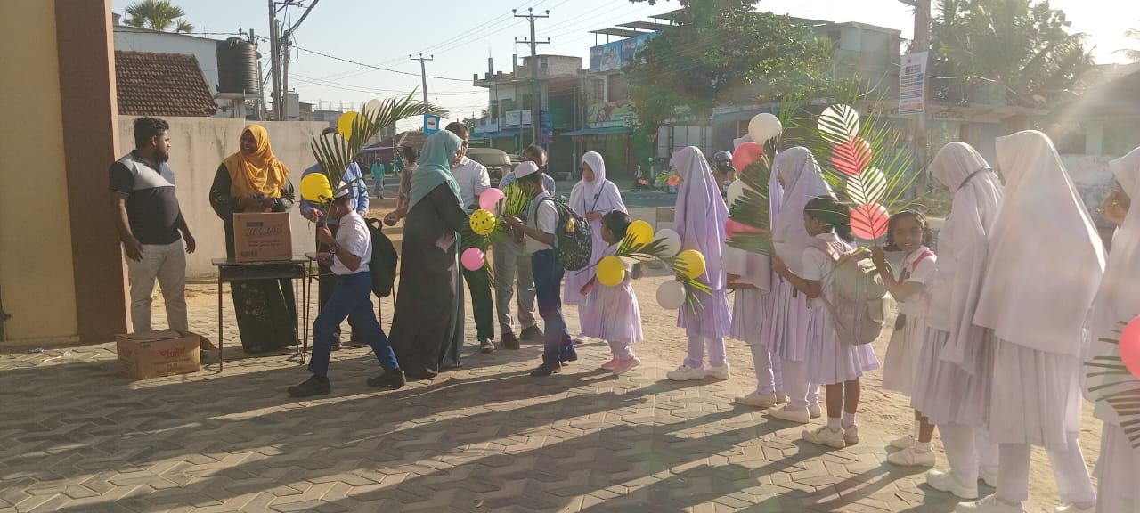 Following this, the students were taken to the Palamunai Public Playground in a procession with colorful balloons. There, the students were given refreshments and snacks, and they returned to school happily.