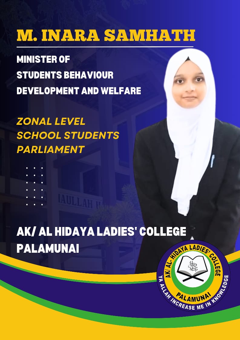 The final session of the Akkaraipattu Zonal Student Parliament for the 2022/2024 academic year was held yesterday (24.11.2024) at Al Muneera Girls' High School, Addalaichenai.