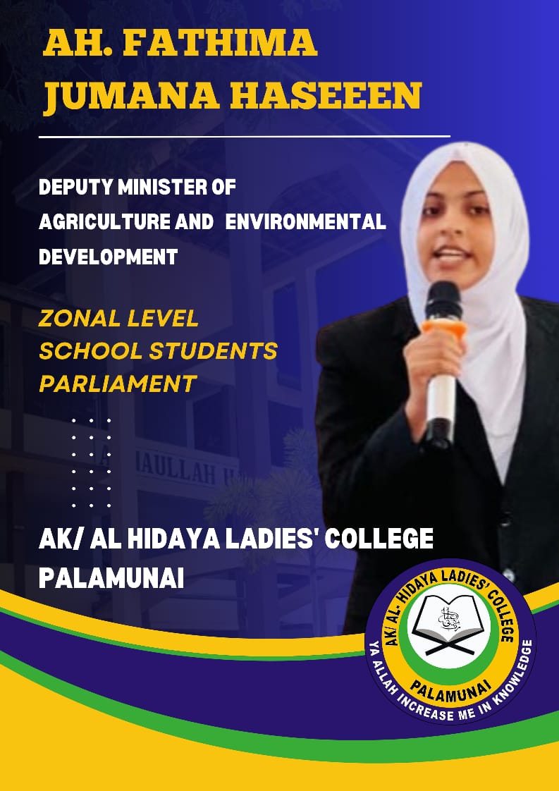 At the above parliamentary event, our school student Abdul Hameed Fatima Jumana Haseen, who is the Deputy Minister of Agriculture and Environmental Development of the Zonal Parliament, gave a very good speech about the important needs of our school.